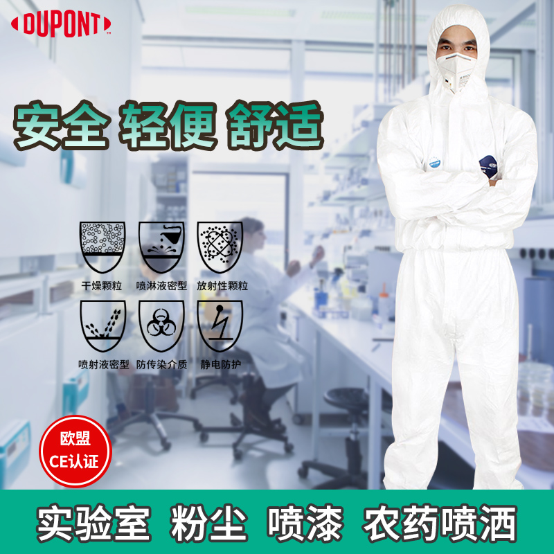 杜邦1422A工業(yè)連體帶帽防護(hù)服 防噴漆粉塵農(nóng)藥靜電玻璃纖維隔離衣 防護(hù)效果佳,輕便舒適,透氣性良好
